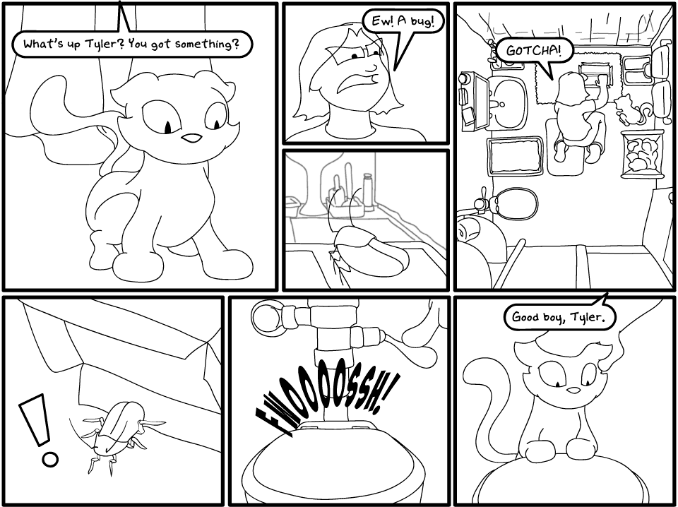 Tyler is a bit of a sadist. I supposed most cats are. He will catch and release bugs to play with them. This time, he had cornered one in the bathroom. This one time, I watched as he ran across the living room to hunt a fly on the window. He managed to catch it mid-air and proceeded to run into the kitchen so he could release it and then catch it again. At one point, I could hear the fly buzzing inside his mouth. |